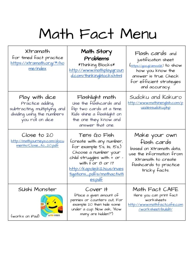 Math Fact Cafe Worksheet / Fact Families Worksheets And Online Exercises -. Basic facts, geometry, algebra, measurement, money, time, fractions, decimals & more. After a few days of practice, have your child complete a timed test. Free elementary math worksheets to print, complete online, and customize. Create a free test worksheet at math fact café. The page contains basic fact generators only.